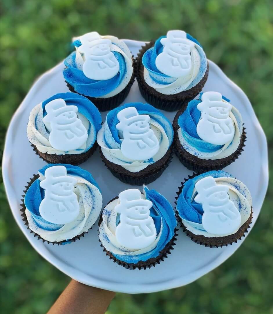 Кроме конфет, пряников и шоколада на новый год можно дарить капкейки! Вы только посмотрите на это чудесное зимнее оформление снеговичками!