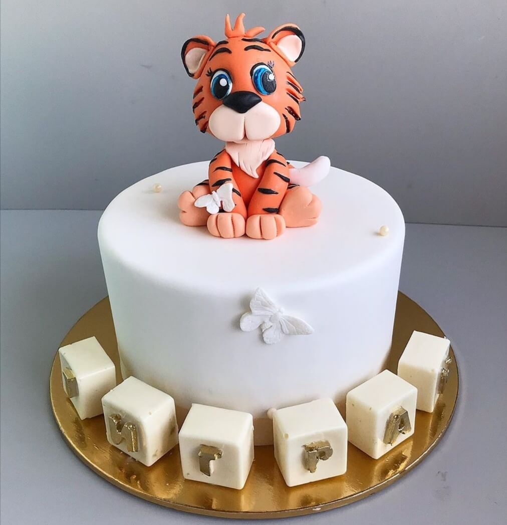 Озорной и любопытный тигрёнок станет главным украшением праздничного детского тортика