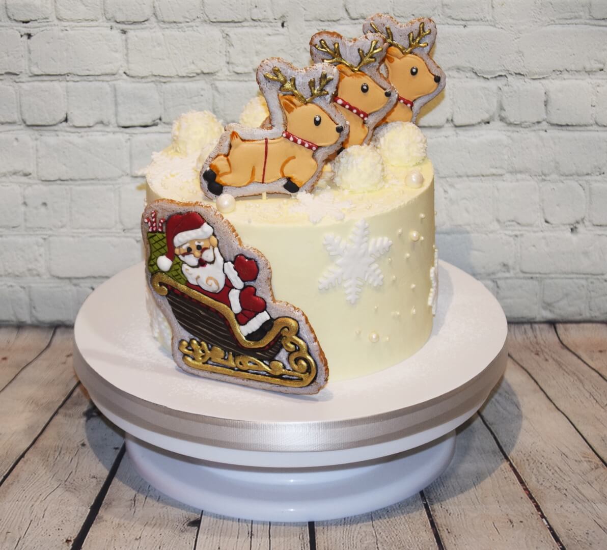 Праздник к нам приходит... И его приносят пряничные олени верхом на вкуснейшем бисквитном тортике!