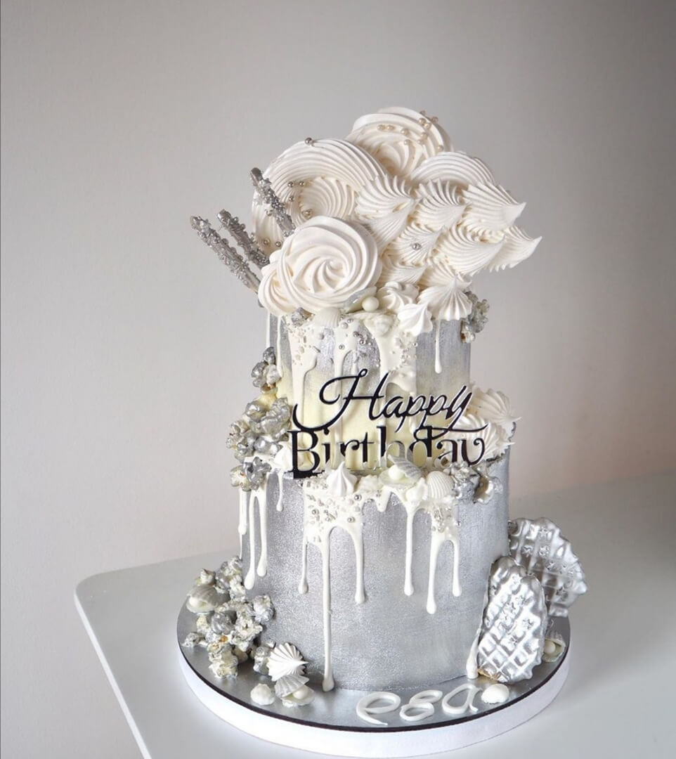 Монохромный серебряный торт выглядит как целое произведение искусства! Восхищение и похвала гостей вам обеспечена!