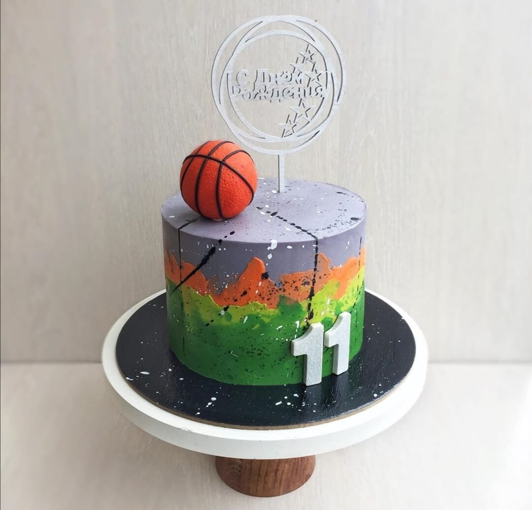 Любители покидать мяч в кольцо не откажутся от такого чудесного поздравительного тортика в их честь