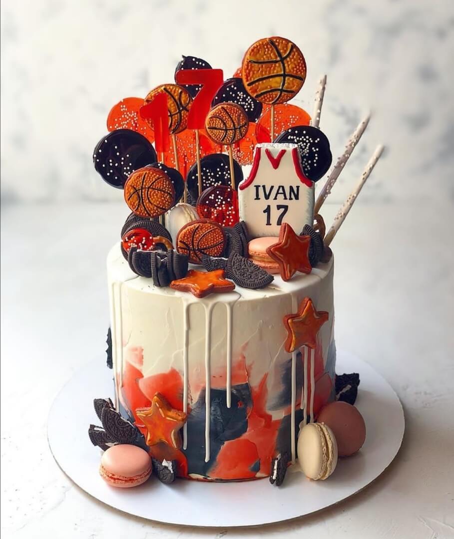 Если именинник не видит жизни без баскетбола, то вариант оформления поздравительного торта тут только один...