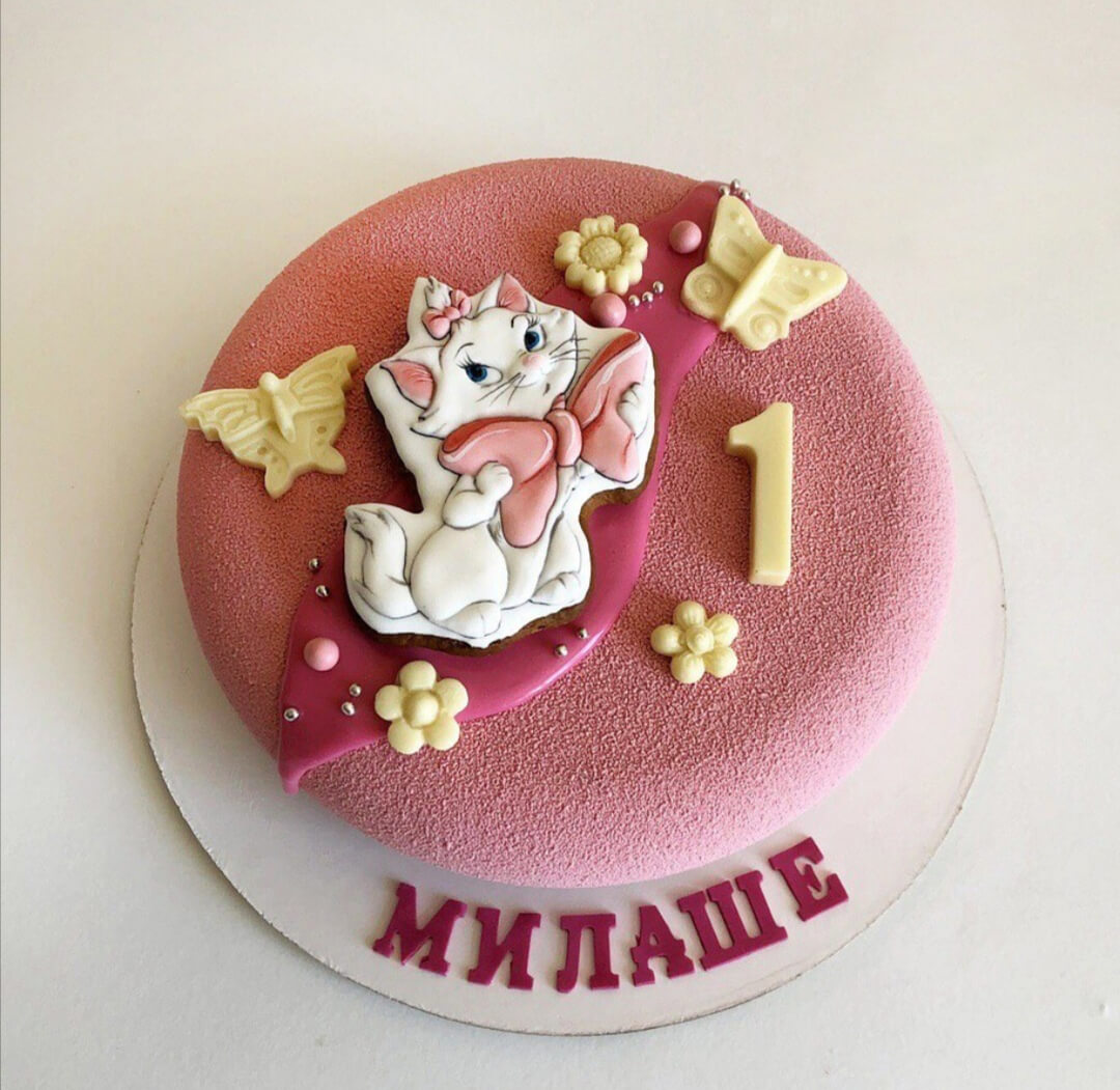 Кошечка Мари спешит поздравить маленькую именинницу с первым годиком жизни